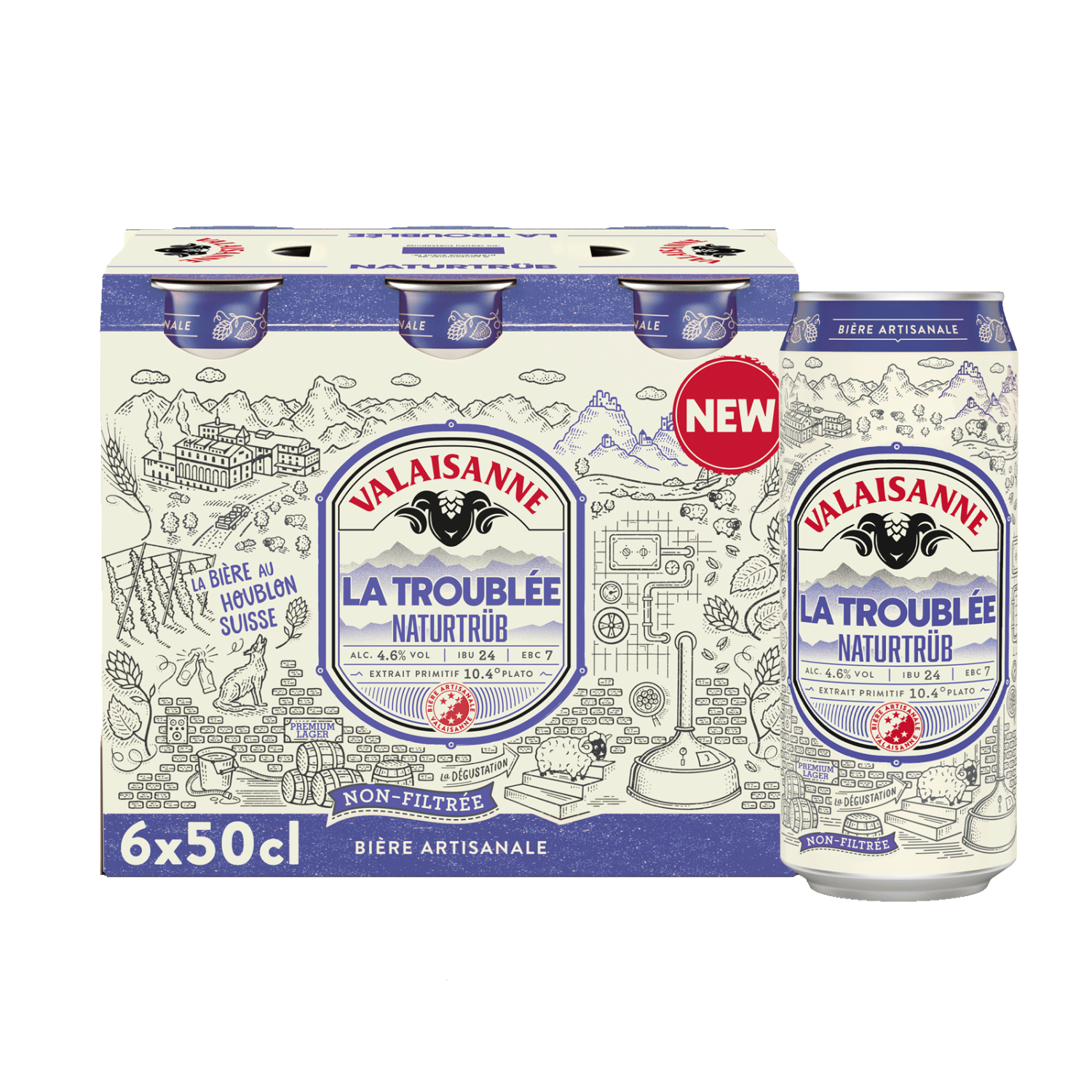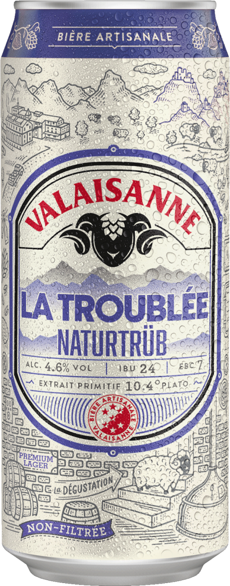 Das VALAISANNE La Troublée ist ein naturtrübes Lagerbier mit eleganter Trübung. Im Geschmack überzeugt das Bier einen harmonischen Körper, begleitet von dezenten fruchtigen Noten. Stilistisch orientiert es sich am Zwickelbier: malzig, ausgewogen und ergänzt durch eine moderate Hopfenbittere (ca. 24 IBU). Mit 4.6% vol. Alkohol und lebendiger Kohlensäure ist es erfrischend und unkompliziert. Seine Frische macht es zum idealen Begleiter für warme Tage und gesellige Momente.